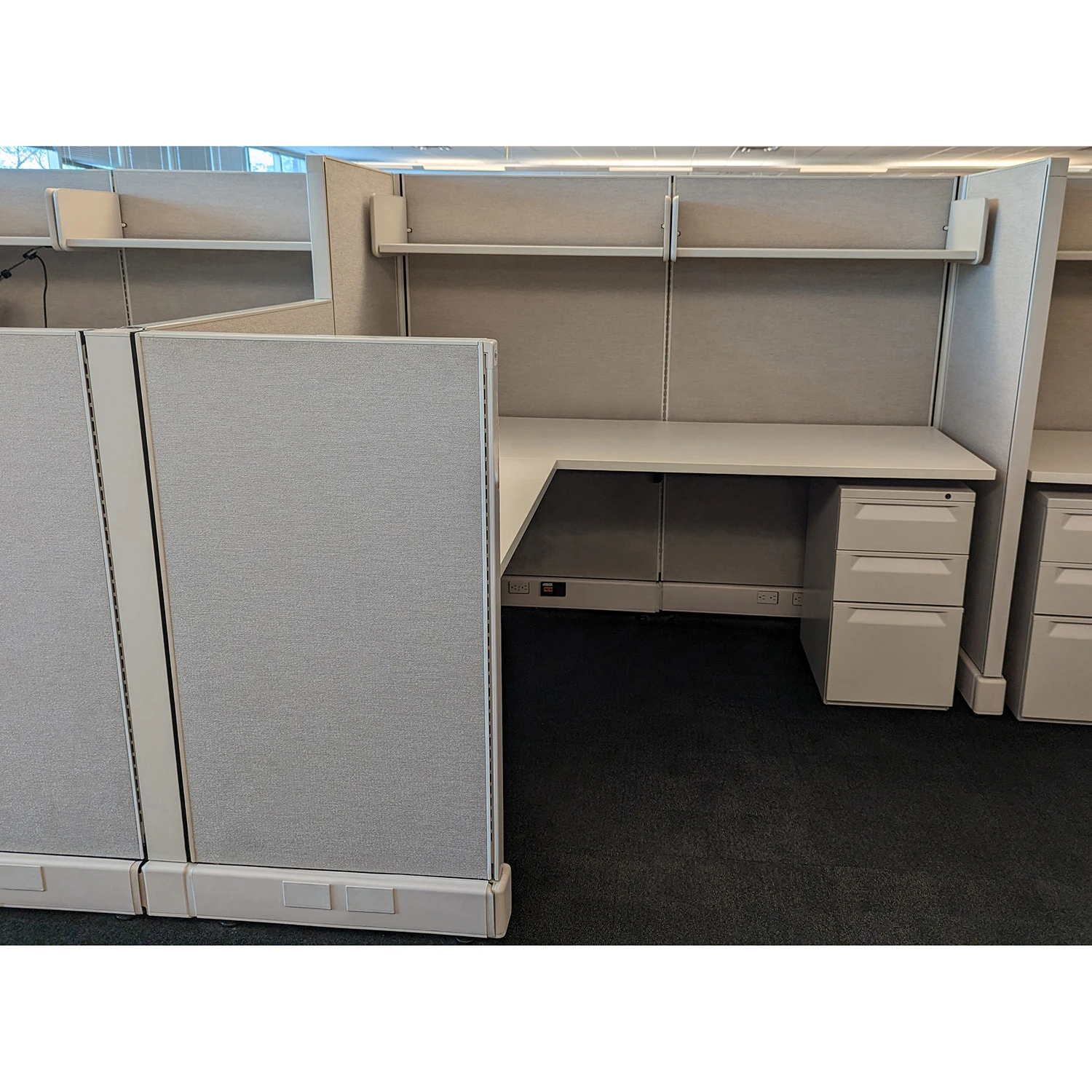 - Stations come with power on the spine. Power whips and poles are available for an additional cost.