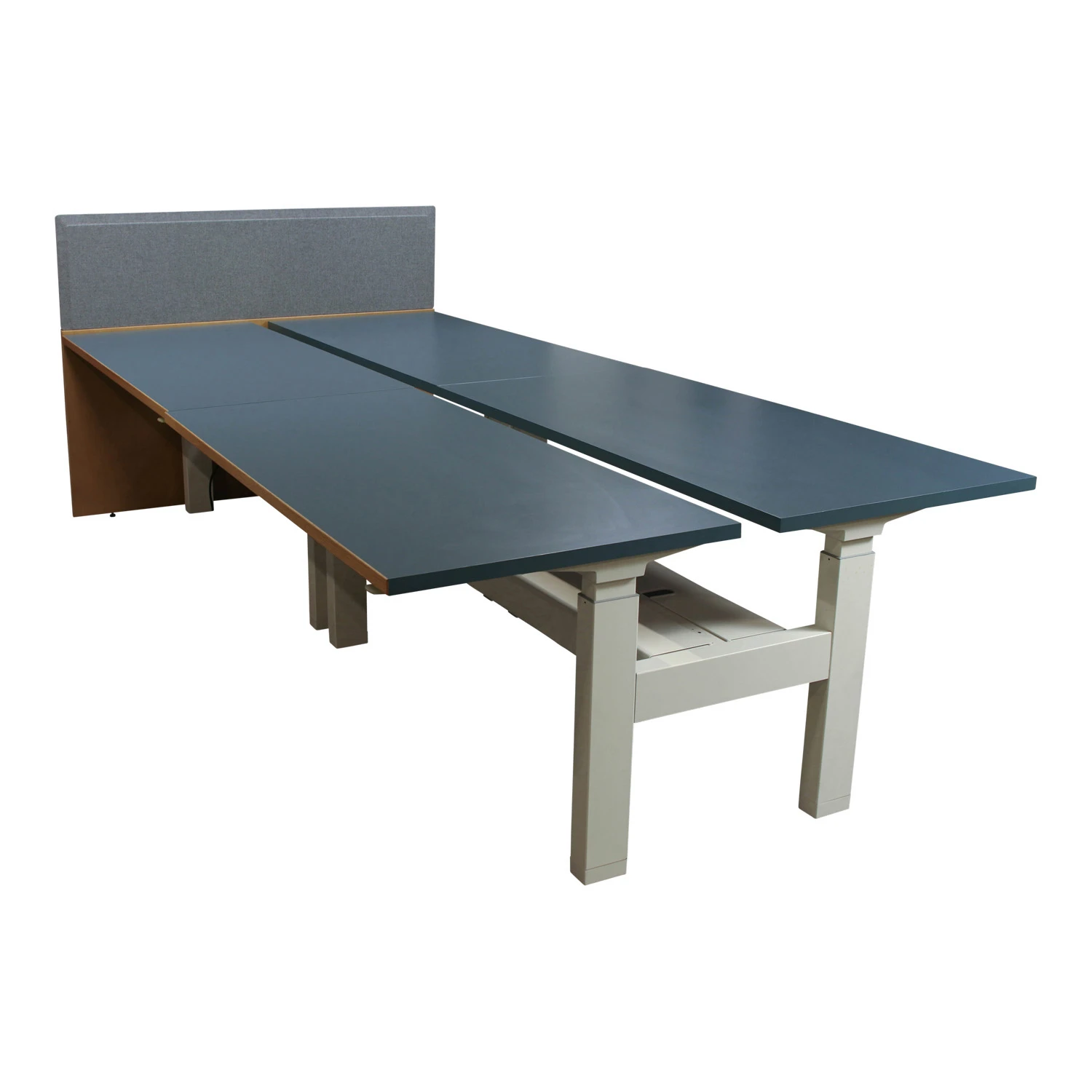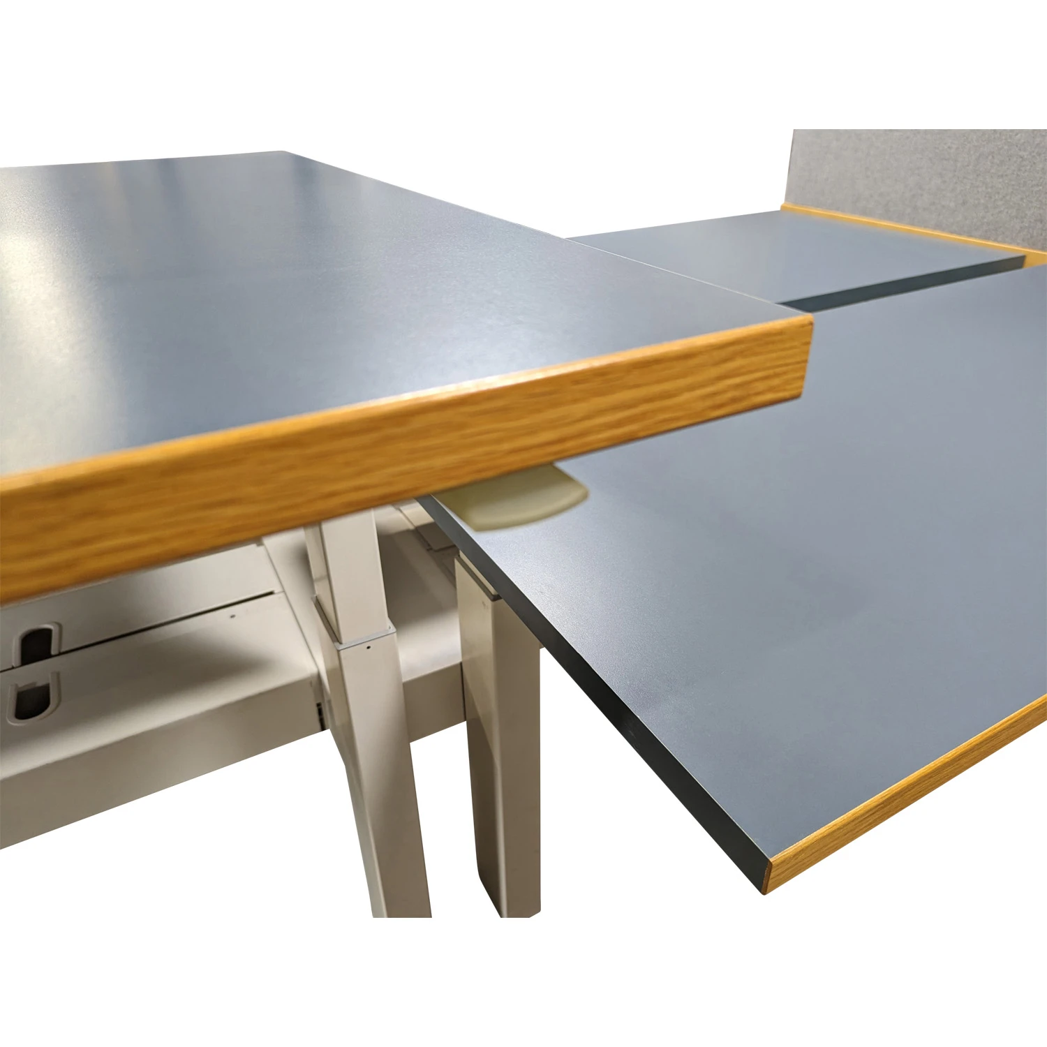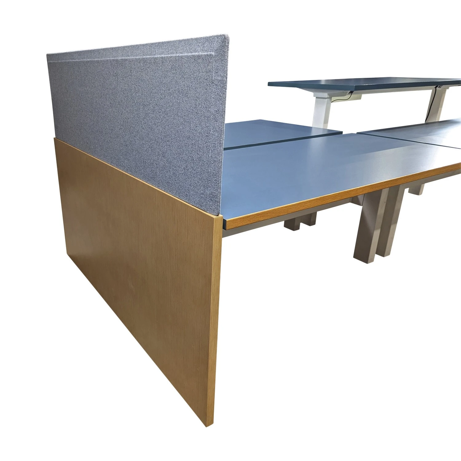 Herman Miller Renew Link Used 30×60 Inch Open Benching w Adjustable Height and Laminate End Panel, Blue and Oak Laminate – Sold in Pods, price per station