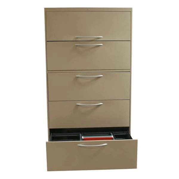 Your lateral file cabinet will arrive clean and in excellent working order, ready for display in your office. The style of file bars or rails that come with your file cabinet are displayed in the photos. We want you to feel confident and happy with your purchase; our filing cabinets are inspected by our quality control team before we ship them to you.