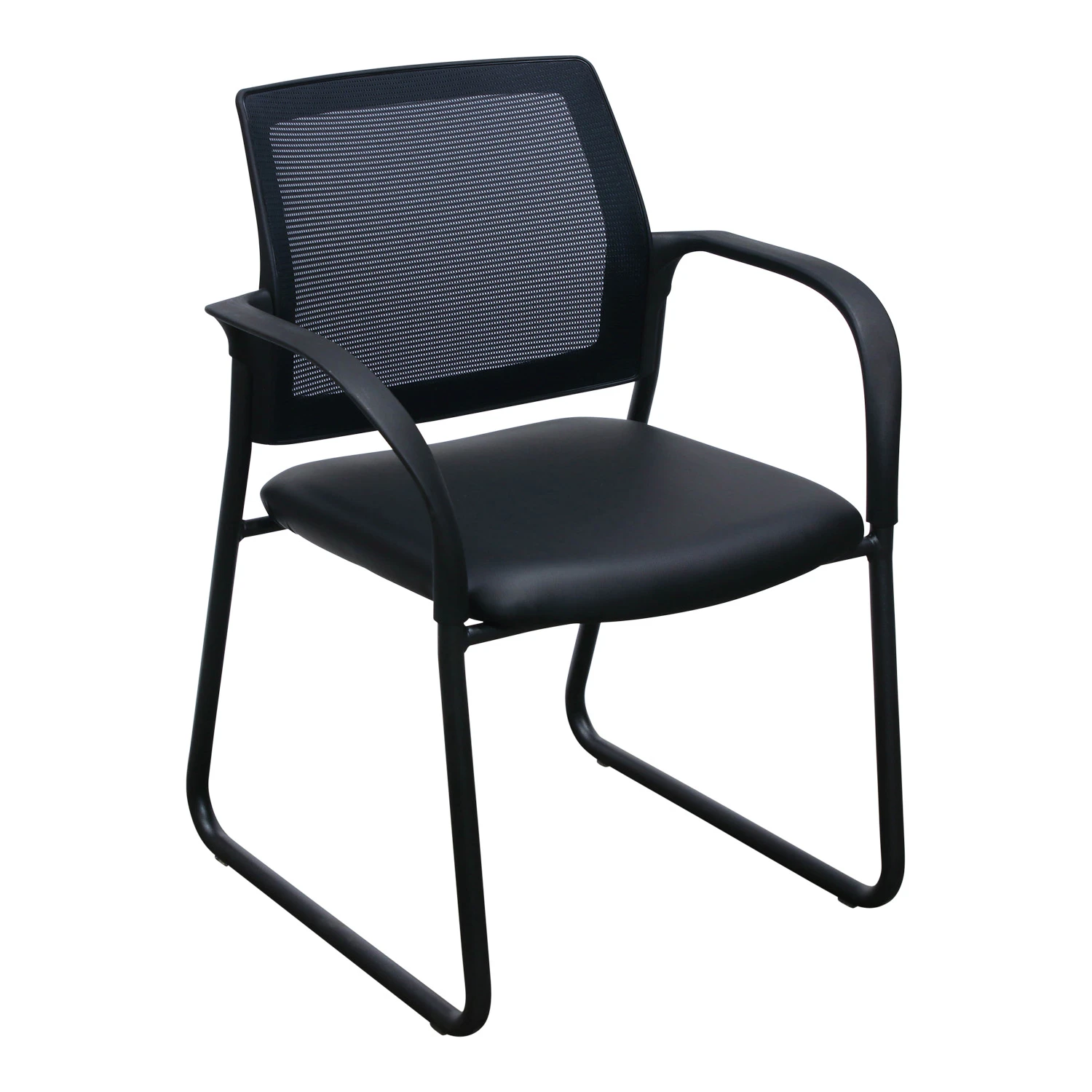 HON Ignition Series Used Mesh Back Sled Base Side Chair, Black Satin PU Leather