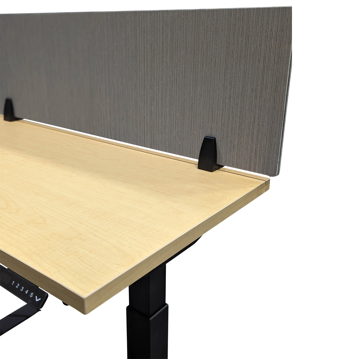 - Fabric privacy divider, requires drilling into work surface to attach