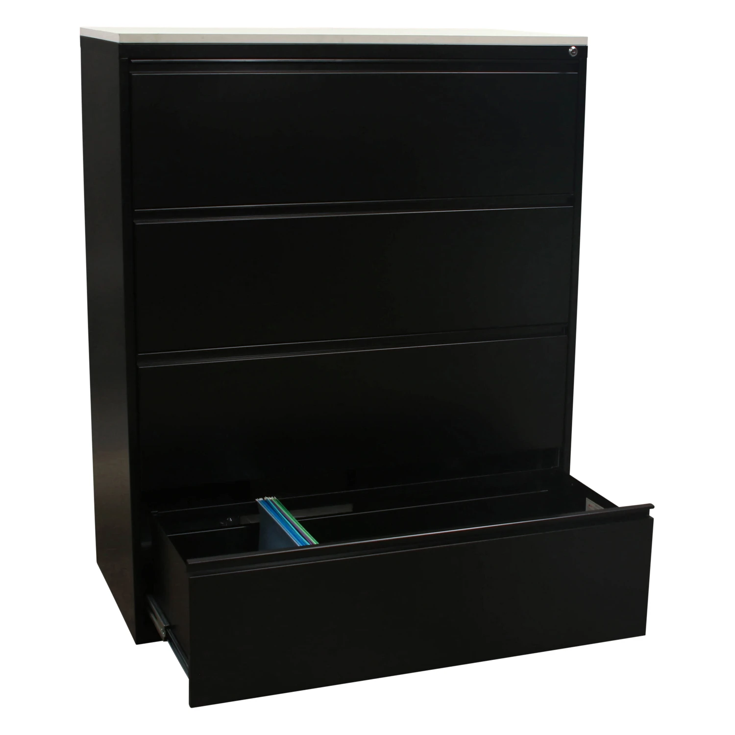 Office Star Products Used 4 Drawer Lateral File 36 Inch w White Laminate Top, Black